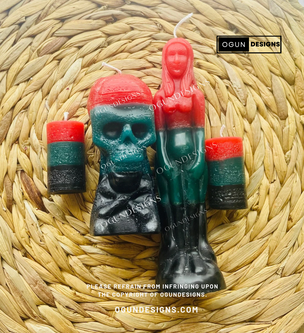 Enhance your altar and offerings with our triple reversible cleansing candle from Ogundesigns, perfect for providing protection and achieving your desired results.